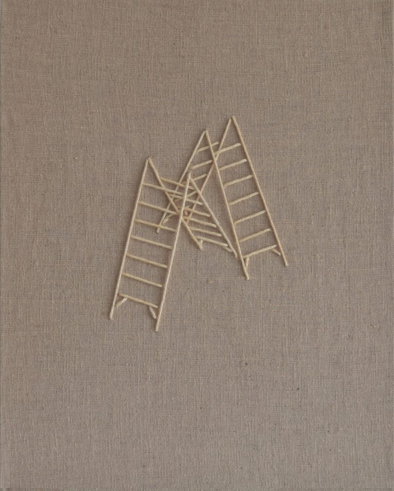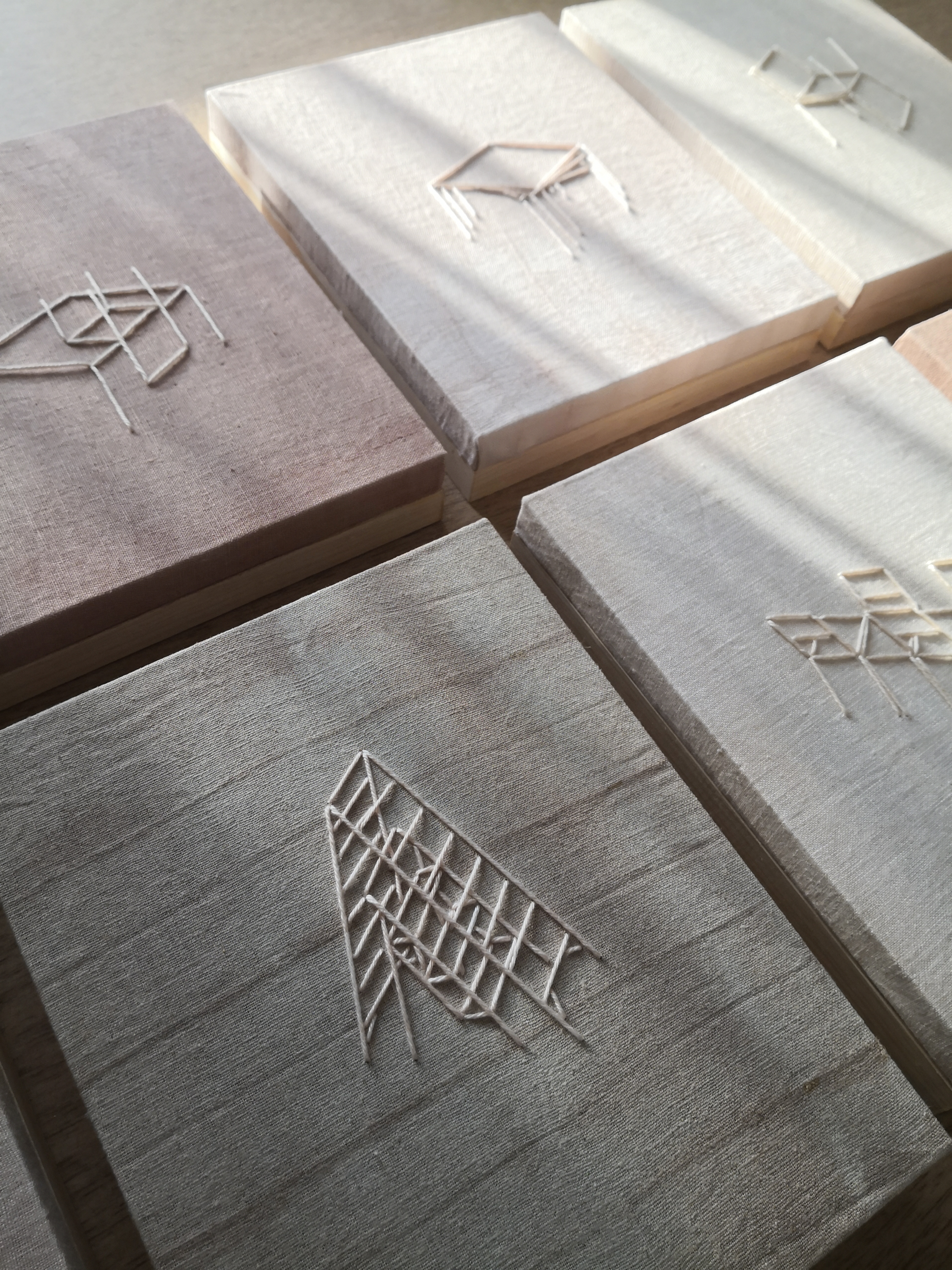Realizado con estambre de algodón sobre lienzo de lino, ambos teñidos con pigmentos naturales.Aguacate, eucalipto, algodón, madera de pino y cera.